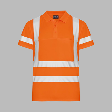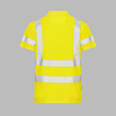 Poloshirt med høj synlighed. Ribstrikket krave og stolpelukning med tre knapper. Funktionsmaterialet transporterer effektivt fugten væk fra huden. Dette bevirker, at materialet tørrer hurtigt, hvilket holder dig tør og frisk hele dagen. Krympe- og rynkefri. Transferreflekser for bedste komfort.