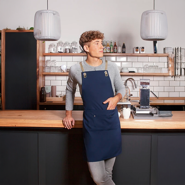 Stilfuldt forklæde (70 x 85 cm) i slidstærkt twill (215 g/m²) med et unikt mix af klassisk charme og streetstyle. Udstyret med aftagelige, krydsede stropper i kontrastfarve og smart lommeinddeling: stort midterrum, pennelommer og lille ekstra lomme. Komfortabel pasform og nem vedligeholdelse – perfekt til moderne arbejdsmiljøer.