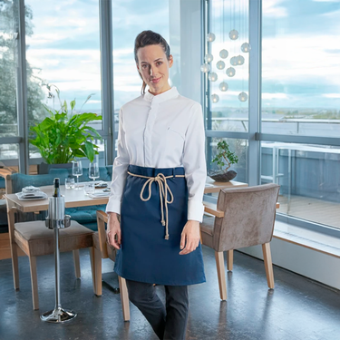 Bæredygtigt og moderne taljeforklæde i twill (215 g/m²) med 65 % genbrugspolyester. Designet i naturlig urban stil med praktiske sideåbninger, kontrastfarvet bindebånd og dekorative syninger. Green Button-certificeret og ideelt til dig, der ønsker stil med omtanke.