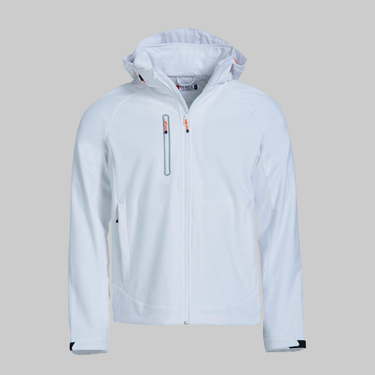 En moderne 3 lag softshelljakke med 2 sidelommer og refleks print rundt om brystlommen. 2 indvendige lommer. Aftagelig hætte. Justerbare manchetter og snøre forneden. TPU Membran + Fleece.