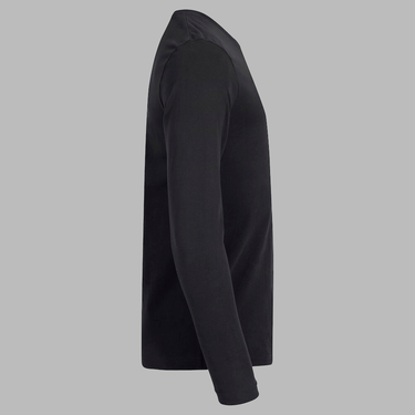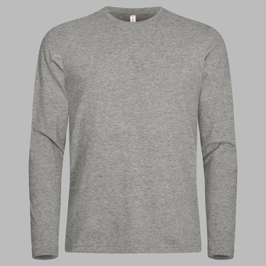 Moderne langærmet T-shirt i premium kvalitet, fremstillet af 100% ringspundet bomuld. Den har dobbelt krave i skalmateriale, sidesømme og forstærket nakketape for øget komfort og pasform. T-shirten er forkrympet og enzymbehandlet for en blød og stabil finish. Let aftagelig neck label gør den velegnet til ommærkning.