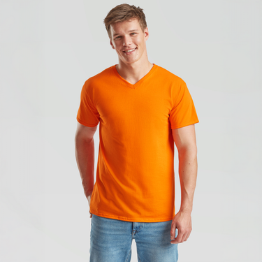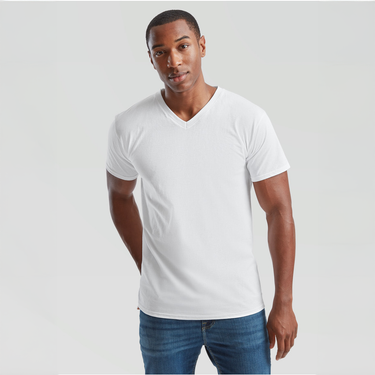 Valueweight V-Neck T-shirt fra Fruit of the Loom har en klassisk V-udskæring med bomuld/Lycra®-rib for en komfortabel og holdbar pasform. Den fine masketæthed sikrer et bedre resultat ved tryk, og nakketape i samme materiale giver ekstra komfort og styrke. Ideel til både hverdagsbrug og til tryk.