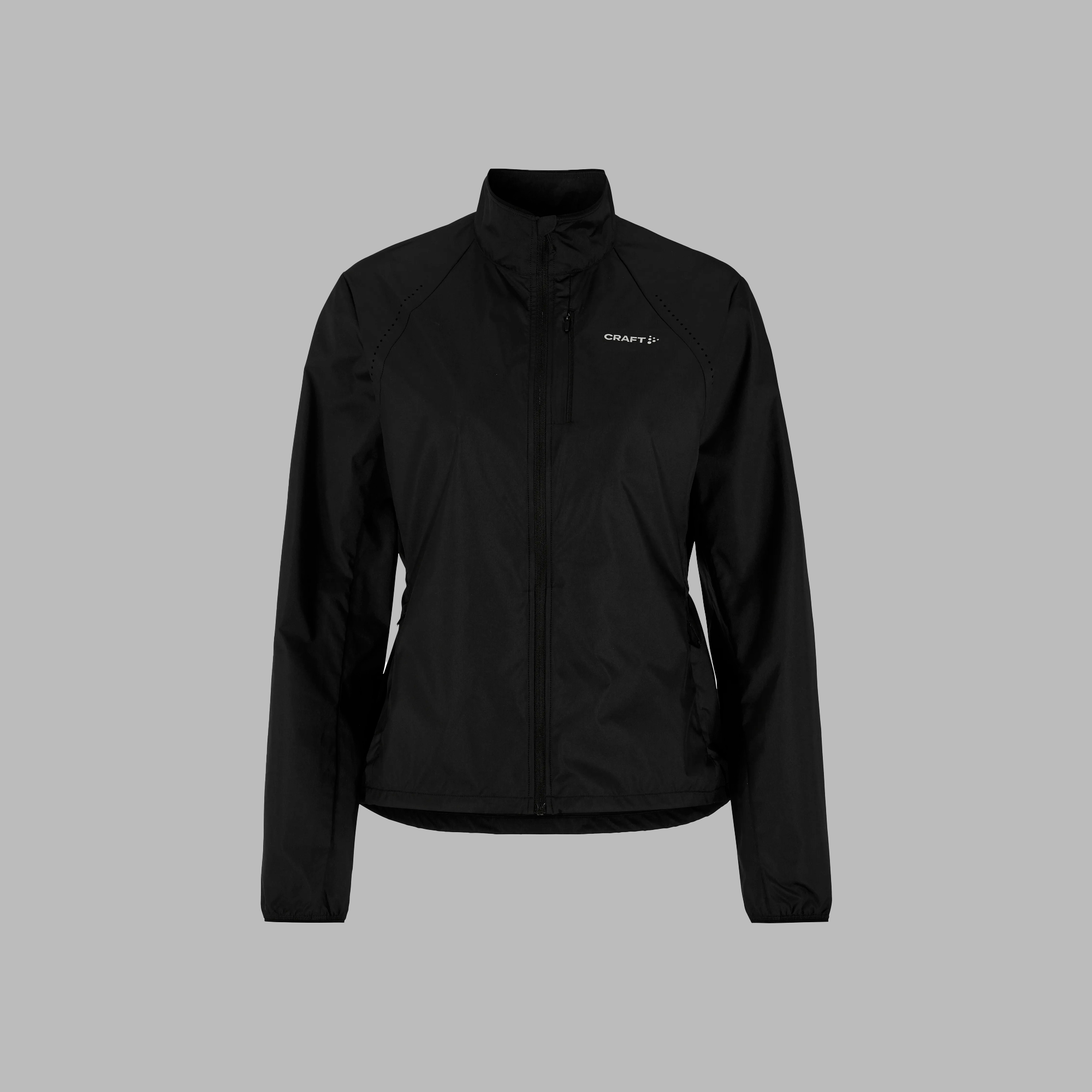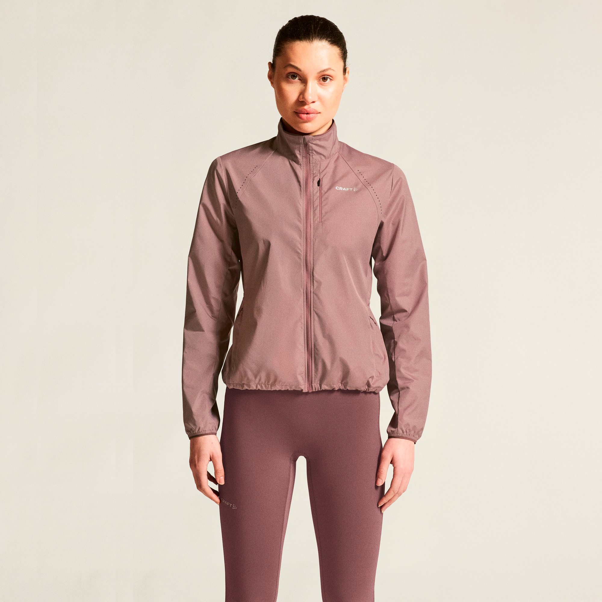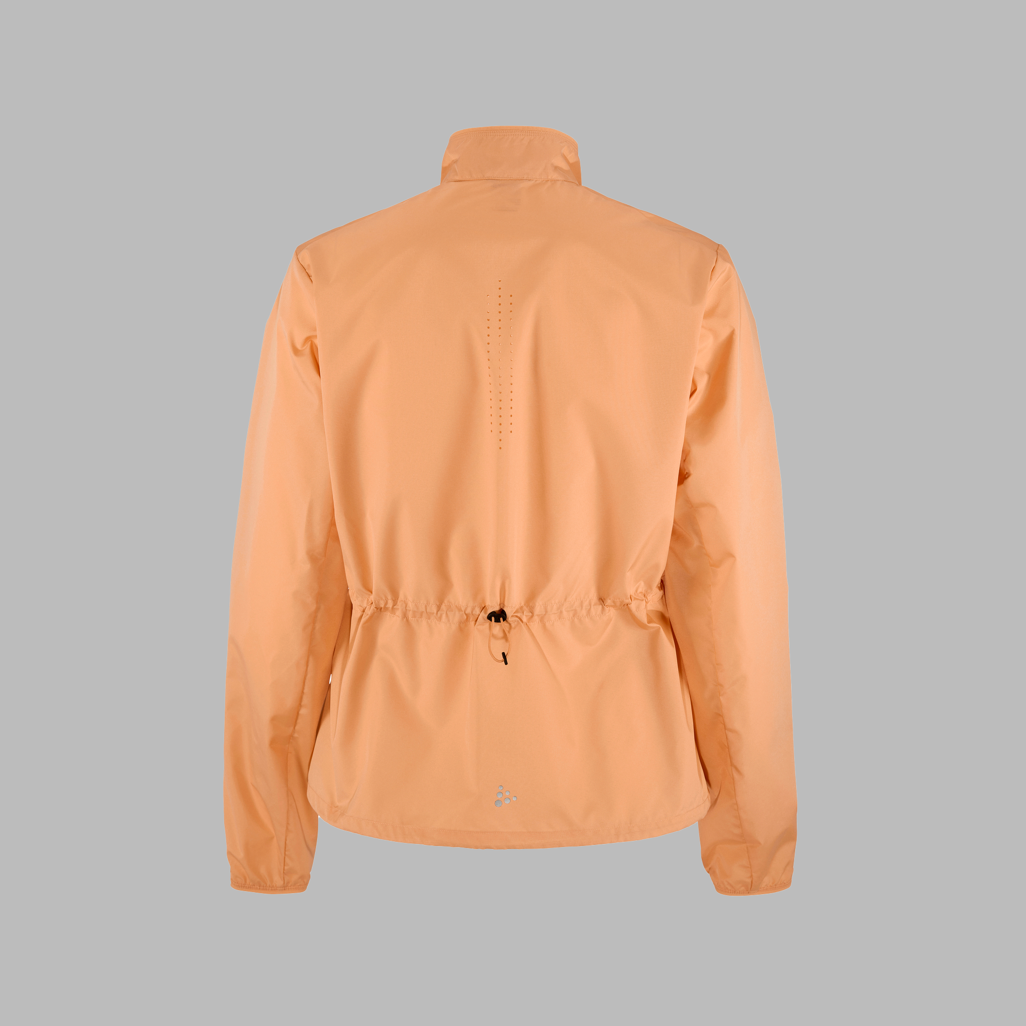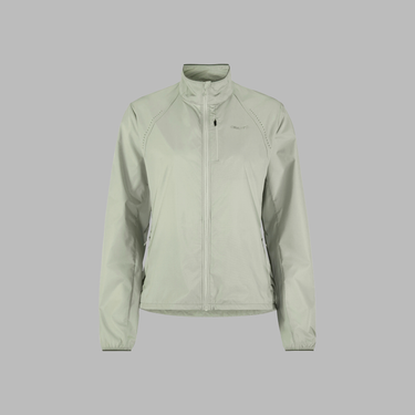 Denne alsidige vindjakke er fremstillet af et let, vind- og vandafvisende stof fremstillet af genbrugsmateriale, der tilbyder effektiv fugttransport under intens træning i blæsende forhold. Perforeringer midt på ryggen, under armene og foran på skuldrene giver forbedret ventilation, mens en justerbar snøre i taljen giver en feminin pasform. Derudover sikrer en brystlomme med lynlås og to sidelommer med lynlås sikker opbevaring af nøgler, energibarer og andre fornødenheder.