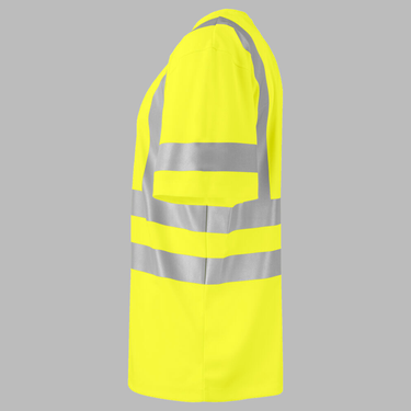 T-shirt med rund hals og høj synlighed. Funktionsmaterialet transporterer effektivt fugten væk fra huden. Dette bevirker at materialet tørrer hurtigt, hvilket holder dig tør og frisk hele dagen. Krympe- og rynkefri. Transferreflekser for bedste komfort.