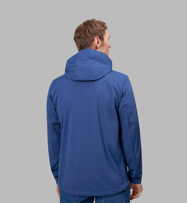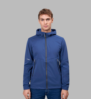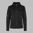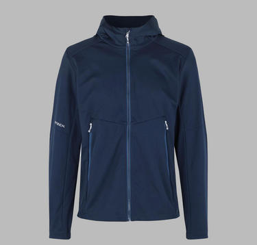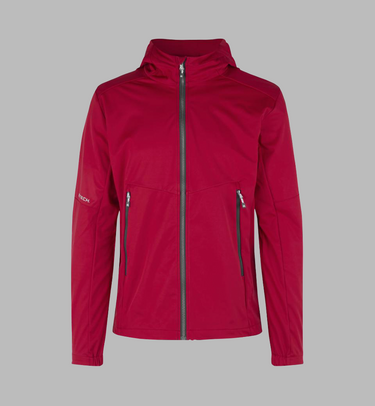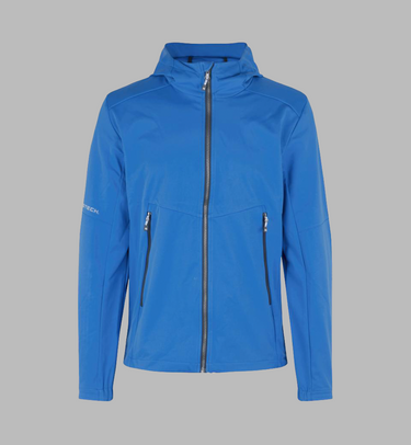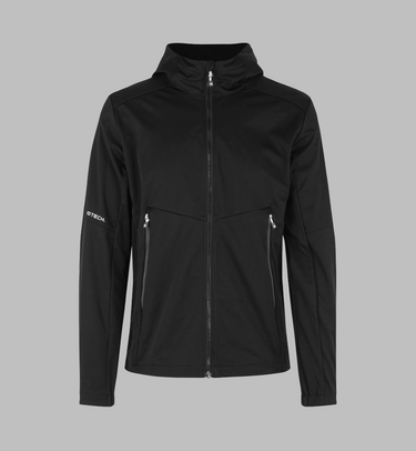 Moderne og let softshell jakke i ID Tech® trelagsmembran med strikket, strækbar overflade for optimal bevægelsesfrihed. Udformet med kontrastdetaljer, funktionel hætte med forstærket skygge og justerbar bund, der beskytter mod blæst. Tætsiddende pasform og elastikindsats ved ærmerne sikrer komfort og et stilrent udtryk.