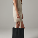 Skil dig ud med denne moderne og miljøvenlige taske i 100% økologisk bomulds-canvas. Det kraftige premium-materiale sikrer lang holdbarhed, mens de kontrastfarvede hanke tilføjer et stilfuldt og iøjnefaldende touch.